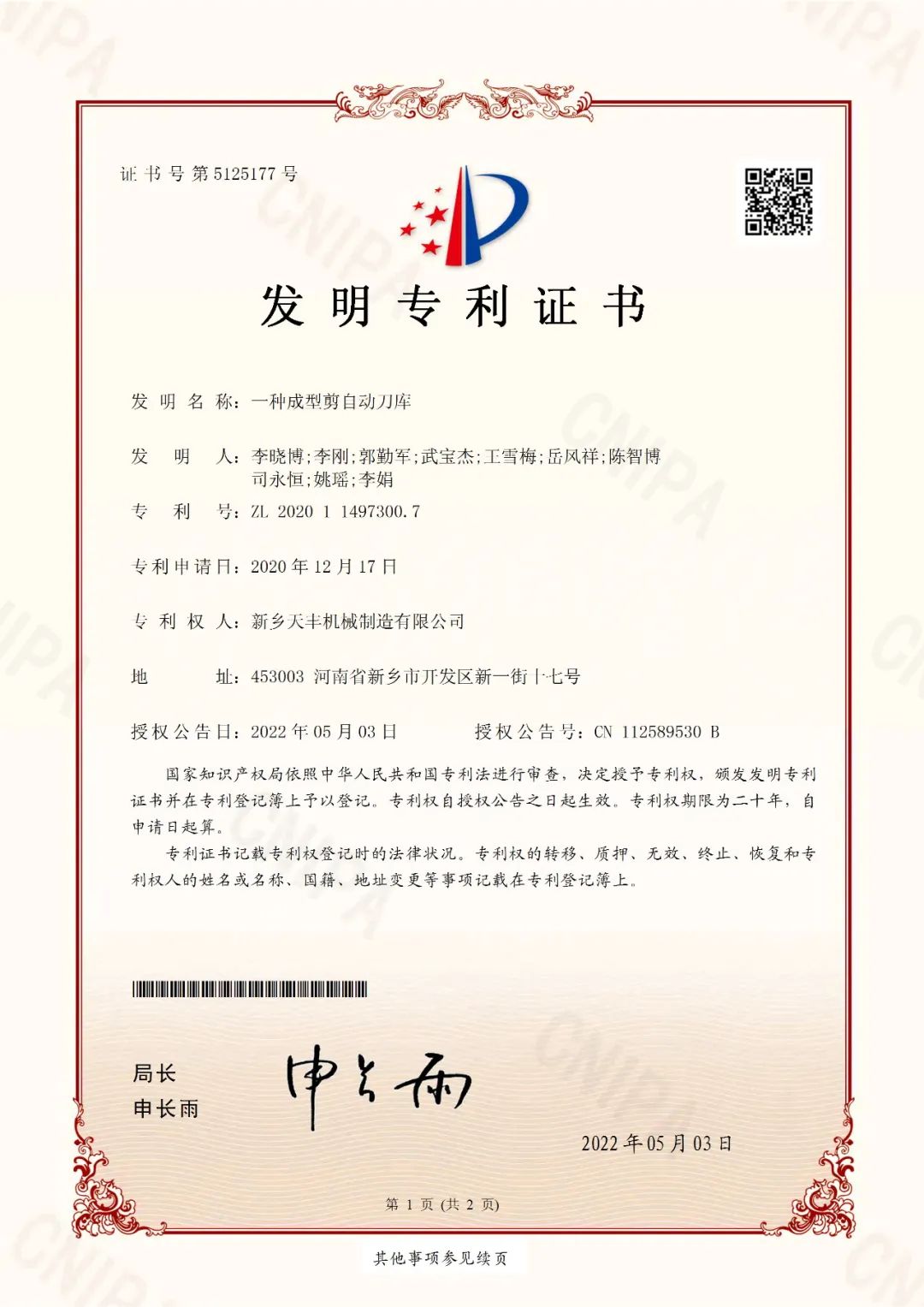 多年来,公司着重加大对科研技术的投入力度,积极开展技术创新工作,已获得多项国家知识产权局授权发明专利及实用新型专利,为公司的未来发展提供了强有力的科技支撑!